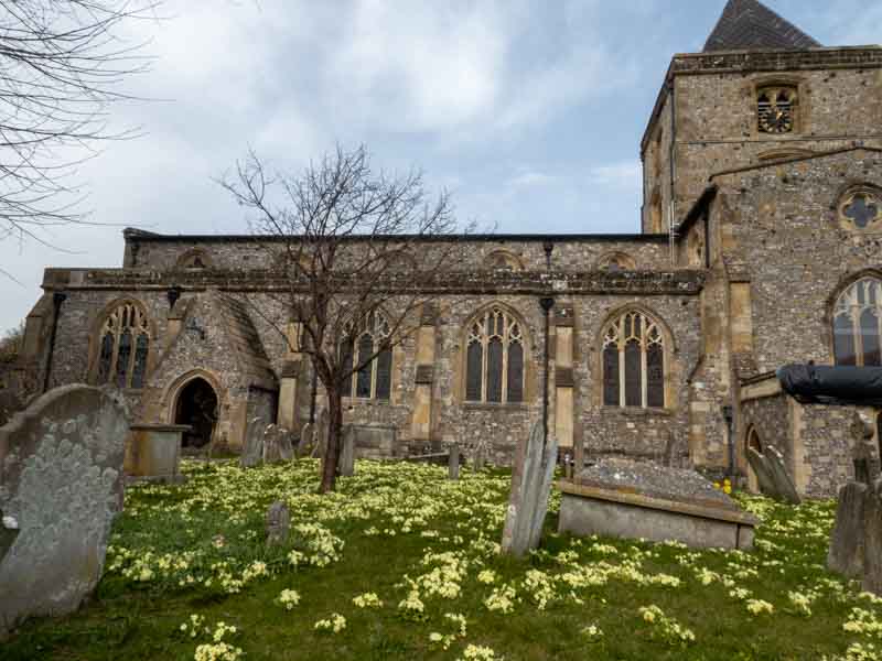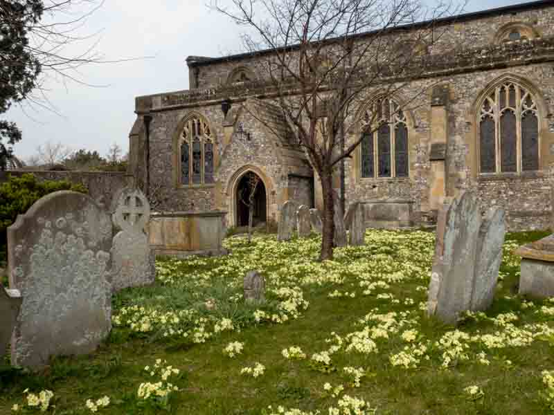 Nearby was the St Nicholas’ Church which caught our eye because of the large number of primrose in the graveyard.