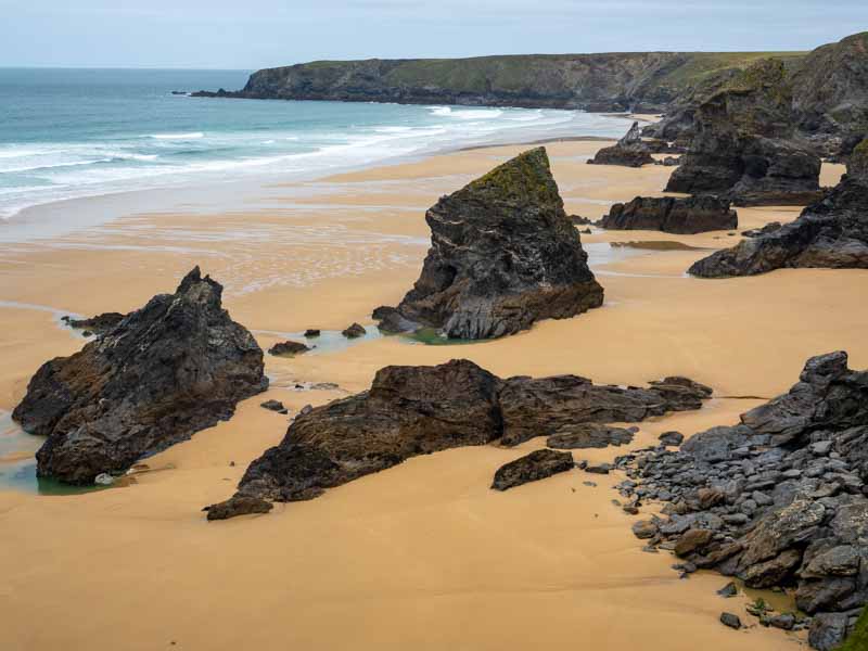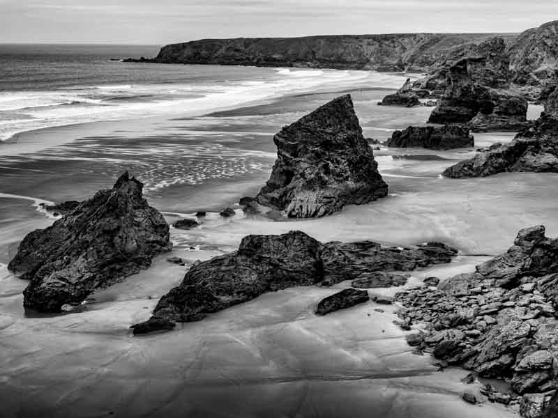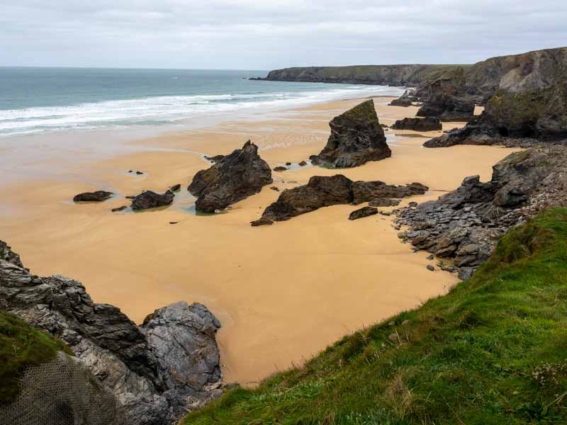 We are now into our last few days, so headed west to the Bedruthan Steps which we last visited 2 years ago on a high tide. Today the tide would be out and so we hoped for some different images, although the forecast was not hopeful for any sunshine.