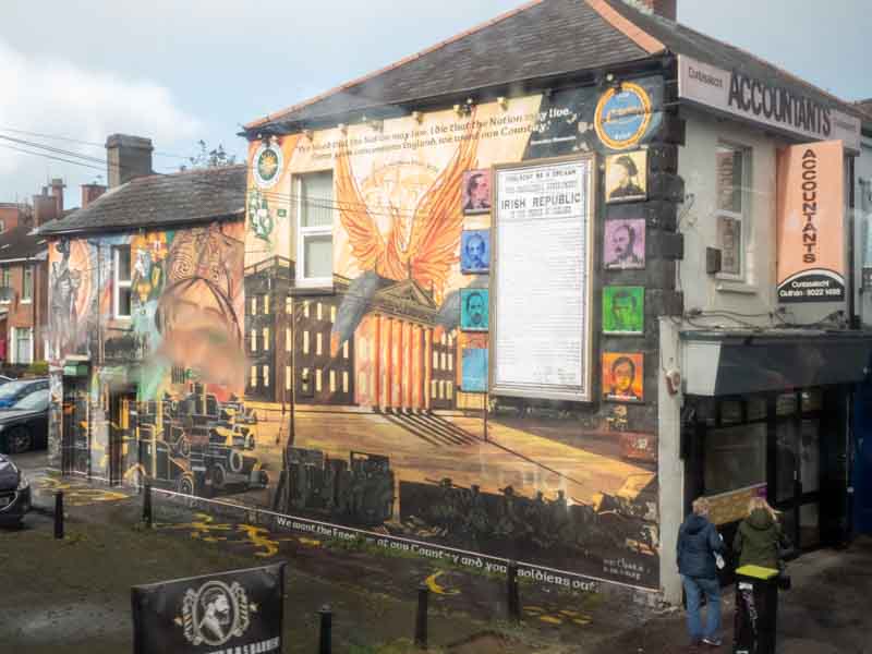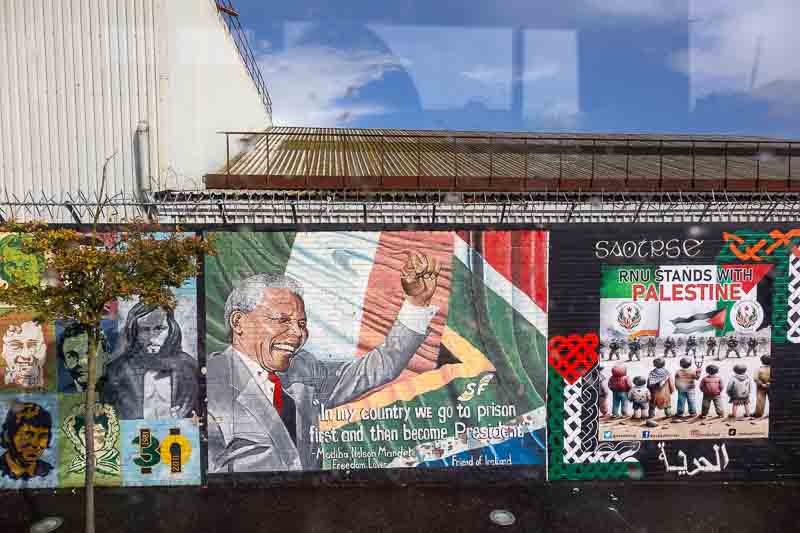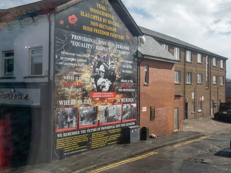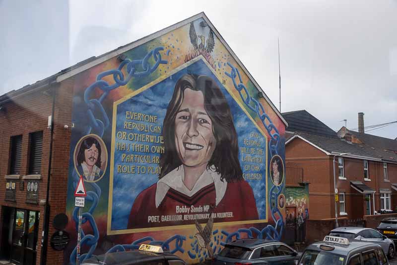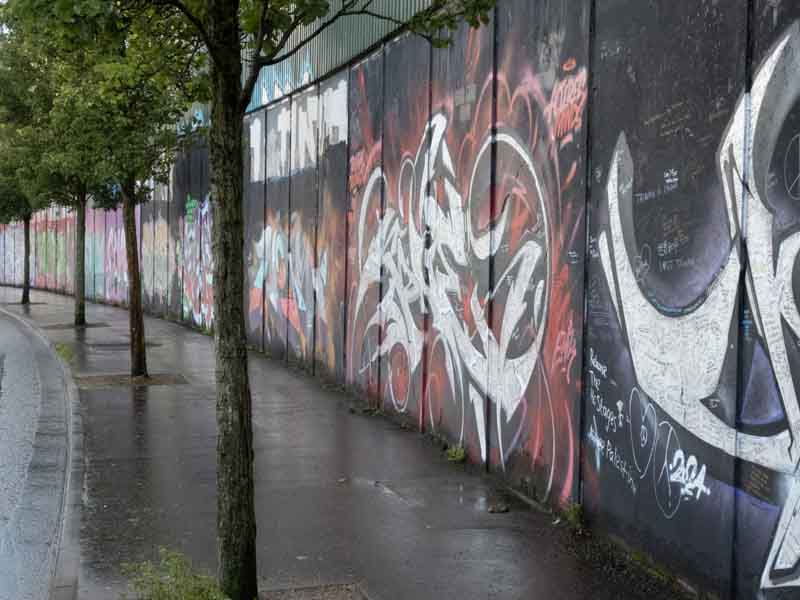 Between the ‘Falls Road’ and the ‘Shankhill Road’ we traveled along Cupar Way and as we were ahead of schedule the driver stopped and let us off the bus for 5 minutes to sign the ‘Peace Wall’. This wall stands 45-feet tall, three times higher than the Berlin Wall, and in place for twice as long. The driver said it probably won’t be removed now as it has become a tourist attraction….