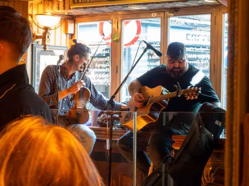 The atmosphere was absolutely terrific so we decided to stay there for a while listening to the music and later eating. Excellent steak and fish + chips with a few pints to wash it down.