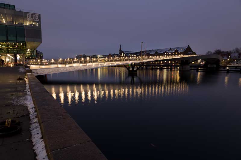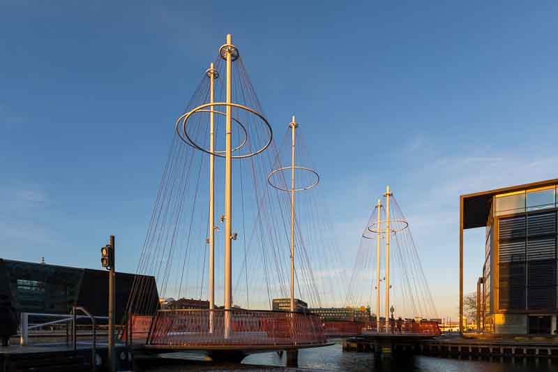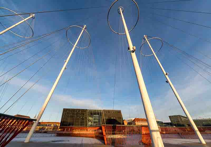 After crossing the Lille Langebro bridge we arrived at the ‘Circle Bridge’ but we the sky needs to be darker to get the more impact from the support masts, so we’ll try again another day.