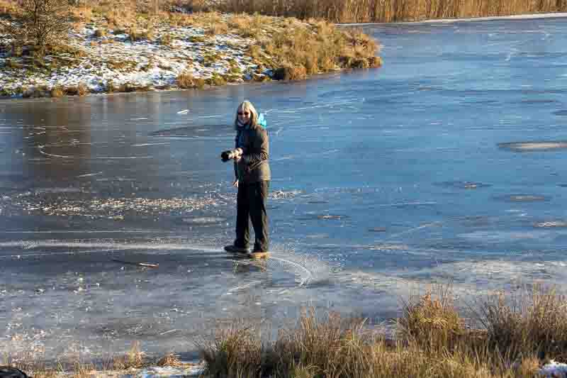 Just inside the gate was a frozen lake which attracted our attention:-