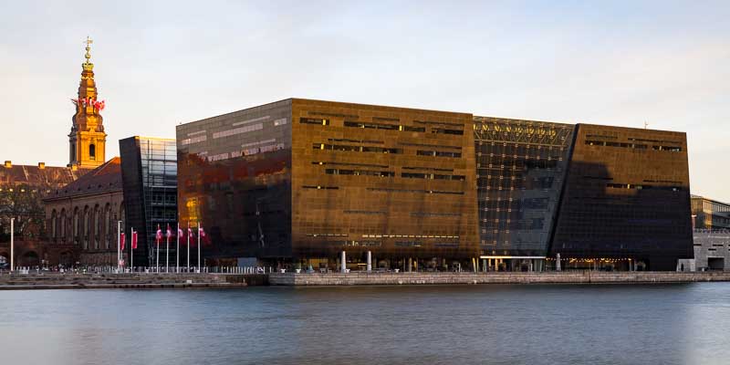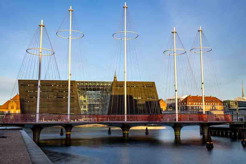 The black building behind the bridge is the ‘Det Kgl. Bibliotek, (The Royal Library)’, but also known as the diamond building.
