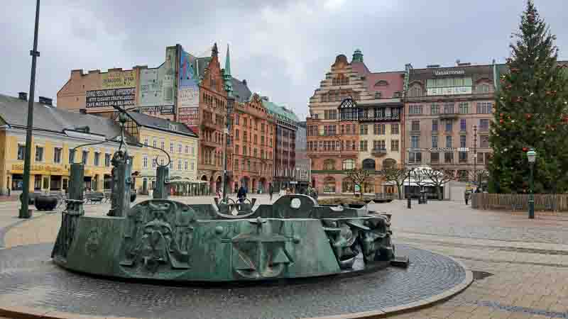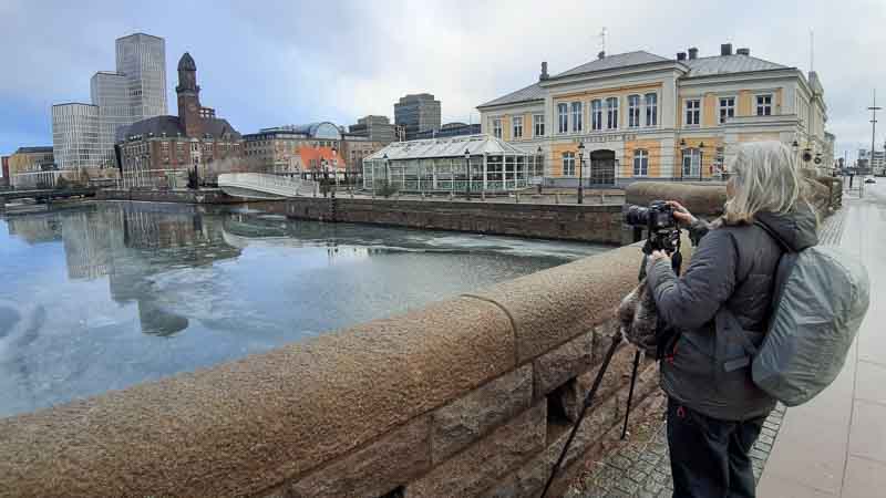 As we left Malmo station it was snowing, so rain hoods up whilst we checked the location of the points of interest. 10 minutes later the snow stopped and apart from a 10 minute rain shower later in the day it remained dry, but cold due to the strong breeze.