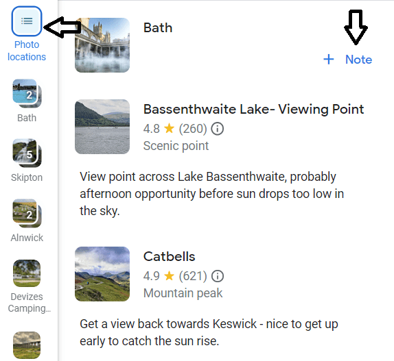 ….then select the ‘Photo Locations’ button on the left and add a note. Looking at previous bookmarks you get the idea of the information I save.