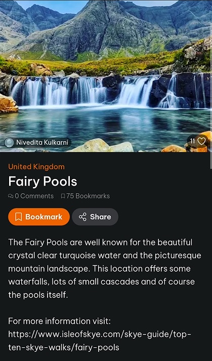 Selecting any one of the ‘Spots’ shown – in this example, Fairy Pools:-