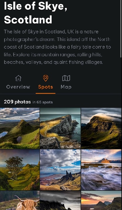 Locationscout is probably my most used app when it comes to looking at good photo locations with most photos taken by good photographers. It describes where a photo was taken from and what lighting conditions may be the best. It also includes a ‘learning’ section which can help improve taking photos or improve your post processing techniques.