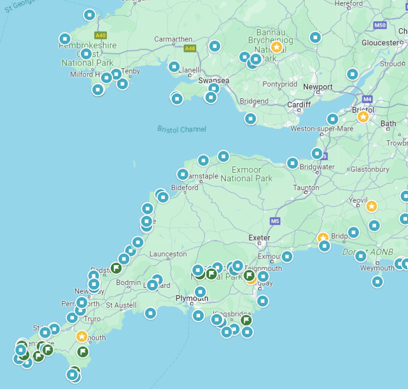 So hopefully you can see that if we decided to revisit the South West of England, we already have a large number of bookmarks to select from. These bookmarks can be shared, so Vanessa can search for campsites for the motorhome in amongst groups of these locations to minimise travel times – important if we are up early for sunrise.