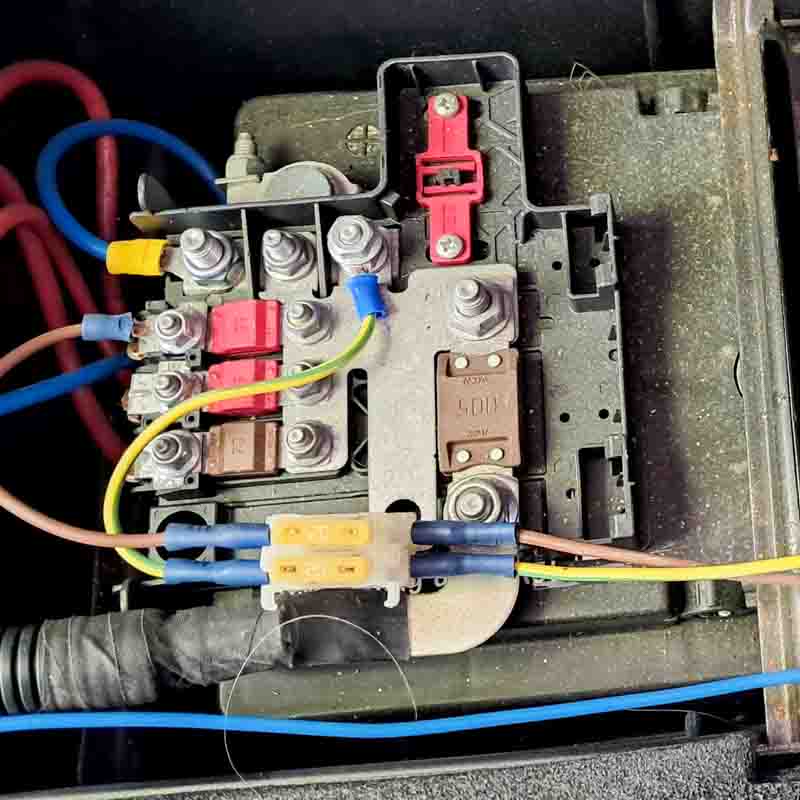 With the power disconnected the motorhome dashboard started to click, click, click…. Well I assumed that the solar panel was still providing the circuit some power? Replacement was quick and easy and then reattached the cables.