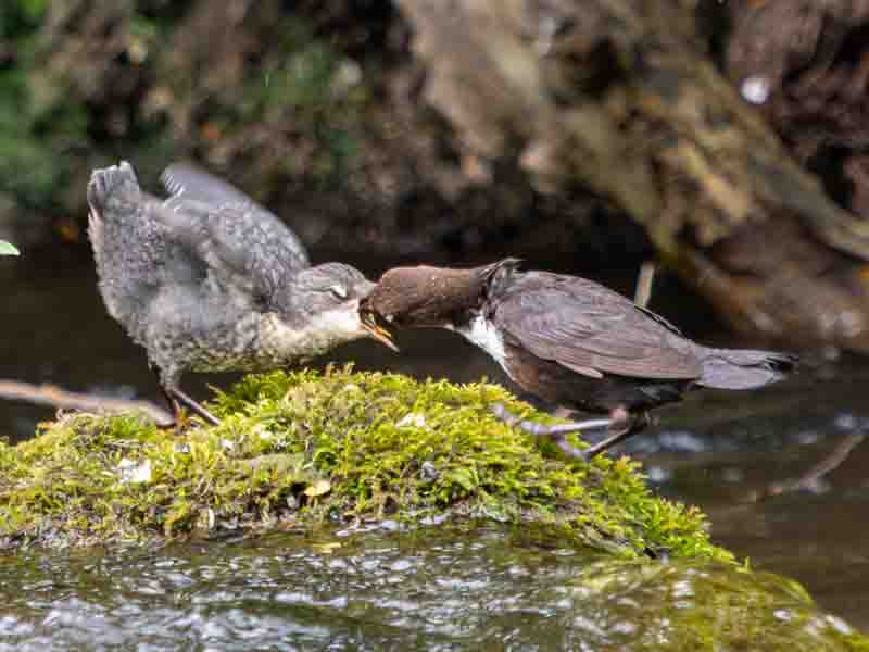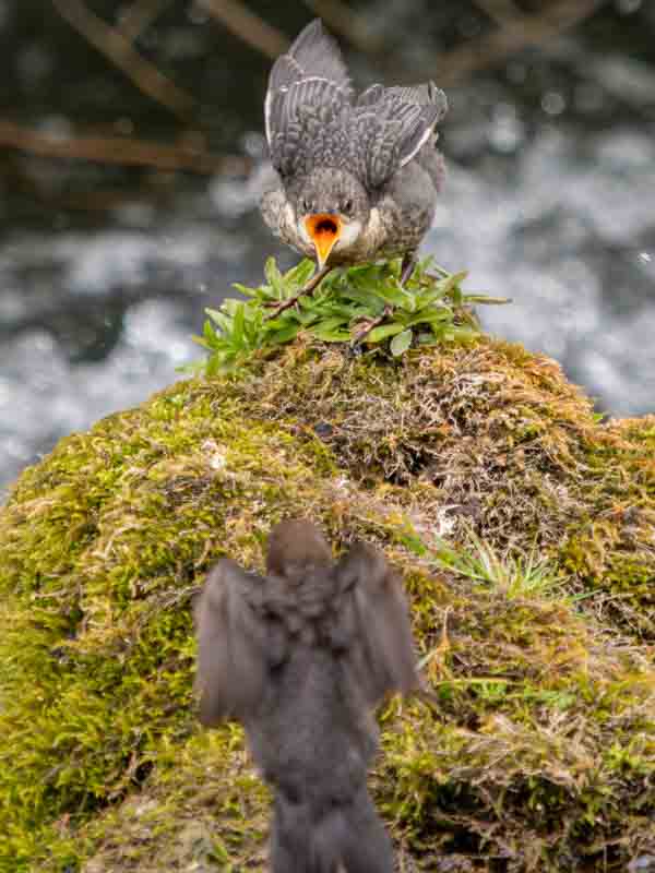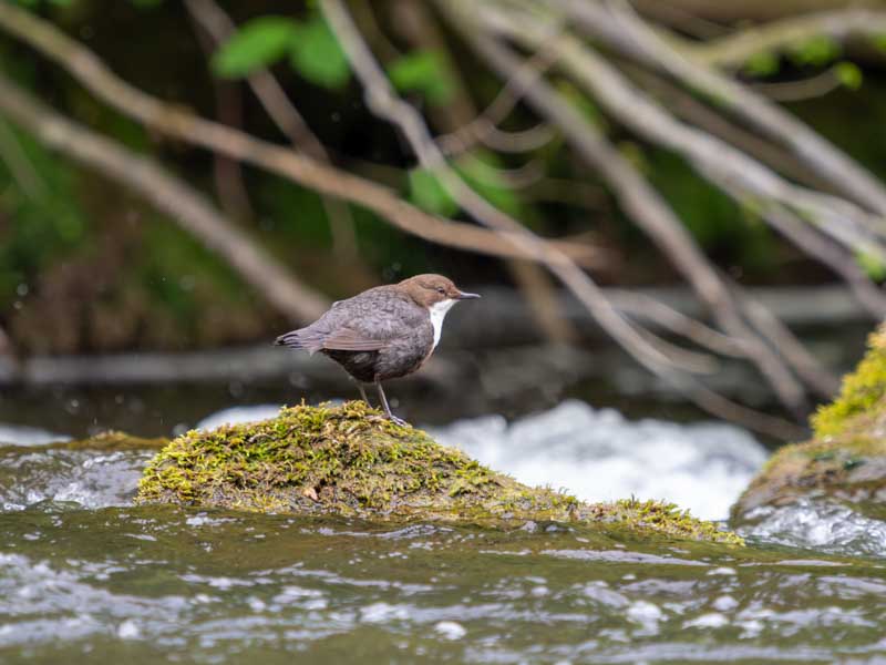 We soon spotted a pair of Dippers dashing in and out for the river, so I fitted my 40-150mm f2.8 lens with 2x converter which gives the 35mm equivalent of 600mm at f5.6 for a full frame camera.