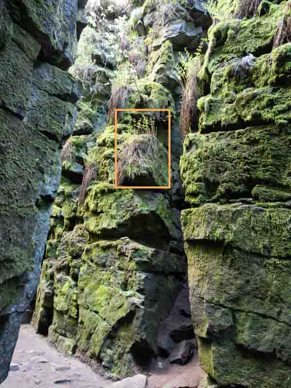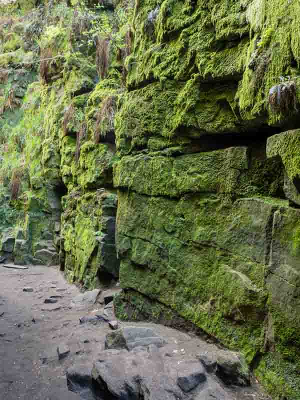 In the two images below, the camera was set to ISO 1600 with an f10 aperture. The shutter speed was 1/5th second. Look at the blown up section in the 2nd image of the plants growing on the rock face – and these images haven’t been sharpened in Lightroom.