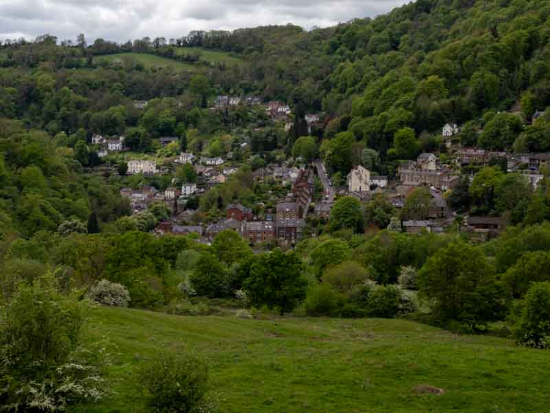 Sunday 4th May – With an uncertain forecast, we left it until the morning to decide on today’s itinerary. I woke to a small shower and grey skies, so we left it until 11am to travel out. Our first destination was Cromford Mills which was very disappointing, so we only stayed 30 minutes and moved on to Bakewell. The A6 was like a carpark, so we turned around and took a back road which allowed this view down onto Matlock-Bath.