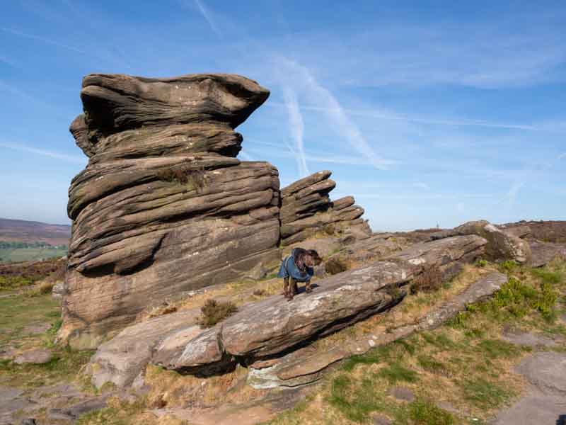 We then set off to visit Lud’s Church – No not what you think; it wasn’t a religious site, but a chasm in the rocks behind the Roaches. It was a steady one mile uphill walk from the carpark with Holly getting a carry for any of the steeper sections.