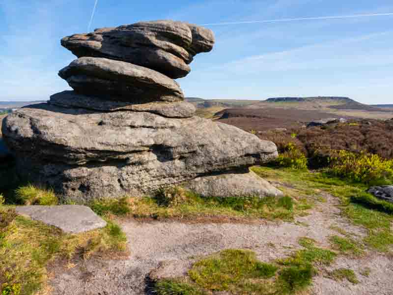 Friday 9th May – Up at 6am to crystal clear skies, so we had a cuppa and headed off to a new location. We had a walk planned from Toads Mouth on the A6187 to Carl Wark to take a photo of Higger Tor. But with nowhere close to park we changed the walk from a car park further west and walked past Mother Cap to get a more distant view of Higger Tor.