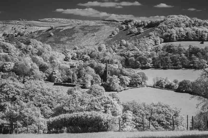 Infrared wasn’t as successful here, so clearly I’ll have learn more as to when I get a good effect or not. These shots were closely followed by an ice cream as we were hot, especially when carrying the camera bag up the slopes. I wanted one last shot of Hathersage before returning to the motorhome. But before that I had to have a pint.