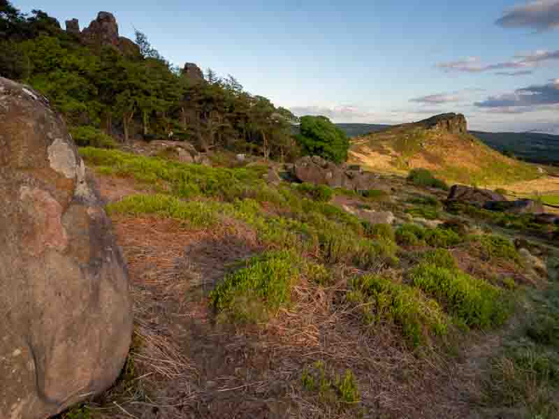 Our campsite is quite close to the Roaches, so we tried to find a hilltop location to take a picture of them in the warm evening light.