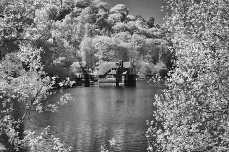Whilst awaiting news of the battery, we visited an old friend who used to live in Southampton and we went out for the day. First plan was to try and find a water course where 2 streams meet, which is the point where Derbyshire, Staffordshire and Cheshire meet. Well in an area of no phone reception I failed to find the correct path to the ‘Three Shires Head’ viewpoint. So we returned to the car and headed off for lunch at the Rudyard Hotel. Afterwards we walked down the the nearby lake and I tried out a few infrared shots with a converted camera that I had borrowed.