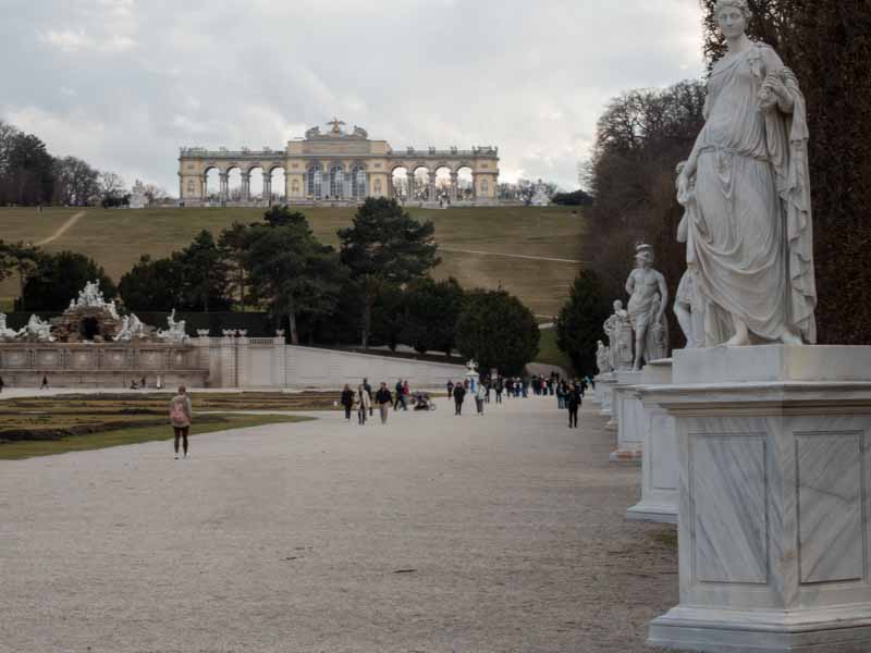 I had intended to hang around here until sunset and the blue hour following, to take a photo of the Gloriette Schönbrunn which is lit up in the evening. The full moon would also be rising in the east, but as happens on many occasions we were disappointed as it had started to cloud over as you will see in the following images and the forecast had changed to show light rain in the evening.