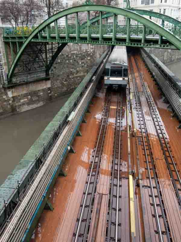 The next location we planned was outside, but at least the rain had eased a little. So back to the tram. There weren’t any obviously picturesque bridges to photograph, but the Zollamtssteg bridge looked interesting.