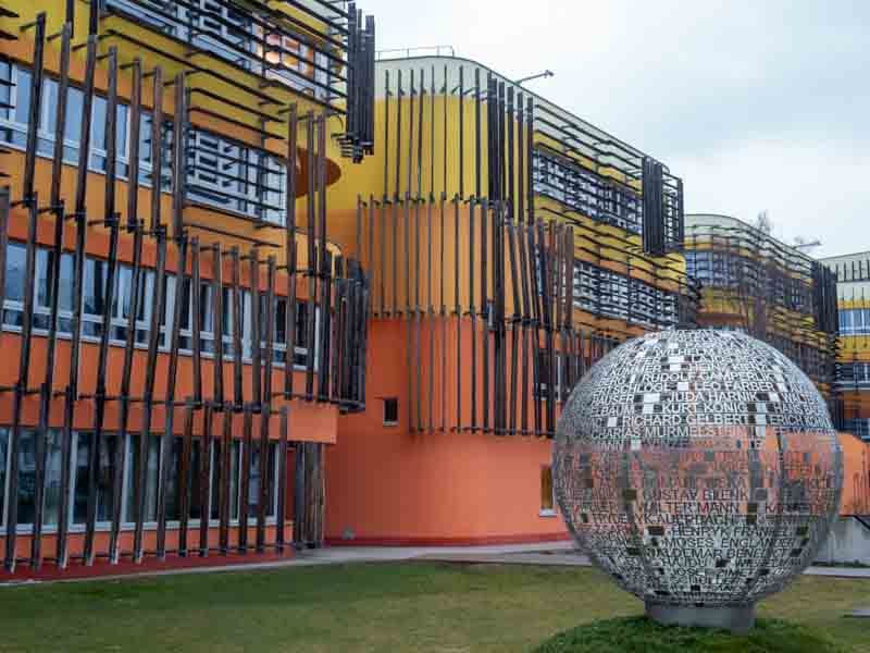 About time for a coffee and cake (at an establishment that takes credit card this time). After this, we headed out towards the University Campus but with a small detour to look at the inside of the Russian Church we visited yesterday. Unfortunately photos weren’t allow, but that didn’t matter as the inside was very dull. So onto the university and the Academic Department Building – why you may ask? I saw this building in LocationScout which I’ve already mentioned and was amazed with the architecture…