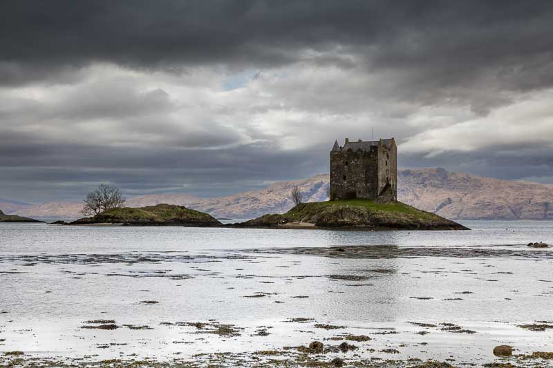 After filling up we continued around our planned circuit in the opposite direction and headed for Stalker Castle. We only just got the camera’s set up on the beach when the heavens opened again – this time hailstones. I had time for one quick photo before packing away and getting soaked returning to the car.